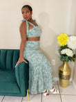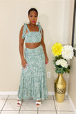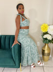 Fall for Fabness in our Angela Set. Featuring semi stretch fabric, round neckline crop top with matching high waist skirt. Make an entrance in this Skirt Set.