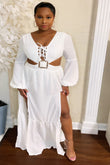 Feel angelic in our Angelina Maxi Dress! Our sheer Angelina Maxi features a plunging neckline, sexy cutouts, attached bottoms, self ties and gold detailing. Angelina is the perfect maxi dress to slay to all the all white parties. Pair this look with a red lip, white or gold accessories and white heels and you are ready to go!