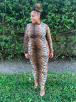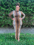 Take your place as Queen of the Jungle in our Animal Kingdom Dress. Featuring a stretch fabric, high neckline, tiger print pattern, long sleeves with zipper closure.