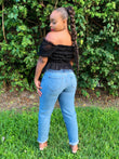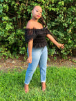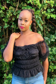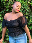 With this top the magic occurs! Featuring a stretch fabric with round neckline, pretty puffy sleeves and body hugging design. Comes complete with no closures