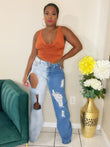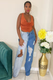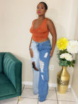 Denim never looked so good as in our Danielle Jeans. Featuring non stretch high waist cut out mom jeans with two toned design , zipper and button closure.