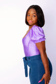 Lavender, Corset, Exaggerated Sleeves, Need we say more? Dress up any bottom with this feminine top sure to put the P in pretty. Features stretch fabric and bonded bodice. Available in sizes Sm, Med, Lrg