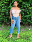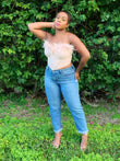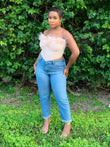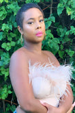 Feathers, Fabness and More in our Toni Top. Featuring a bustier style semi stretch fabric, bonding, round neckline, nude coloring and zipper closure.