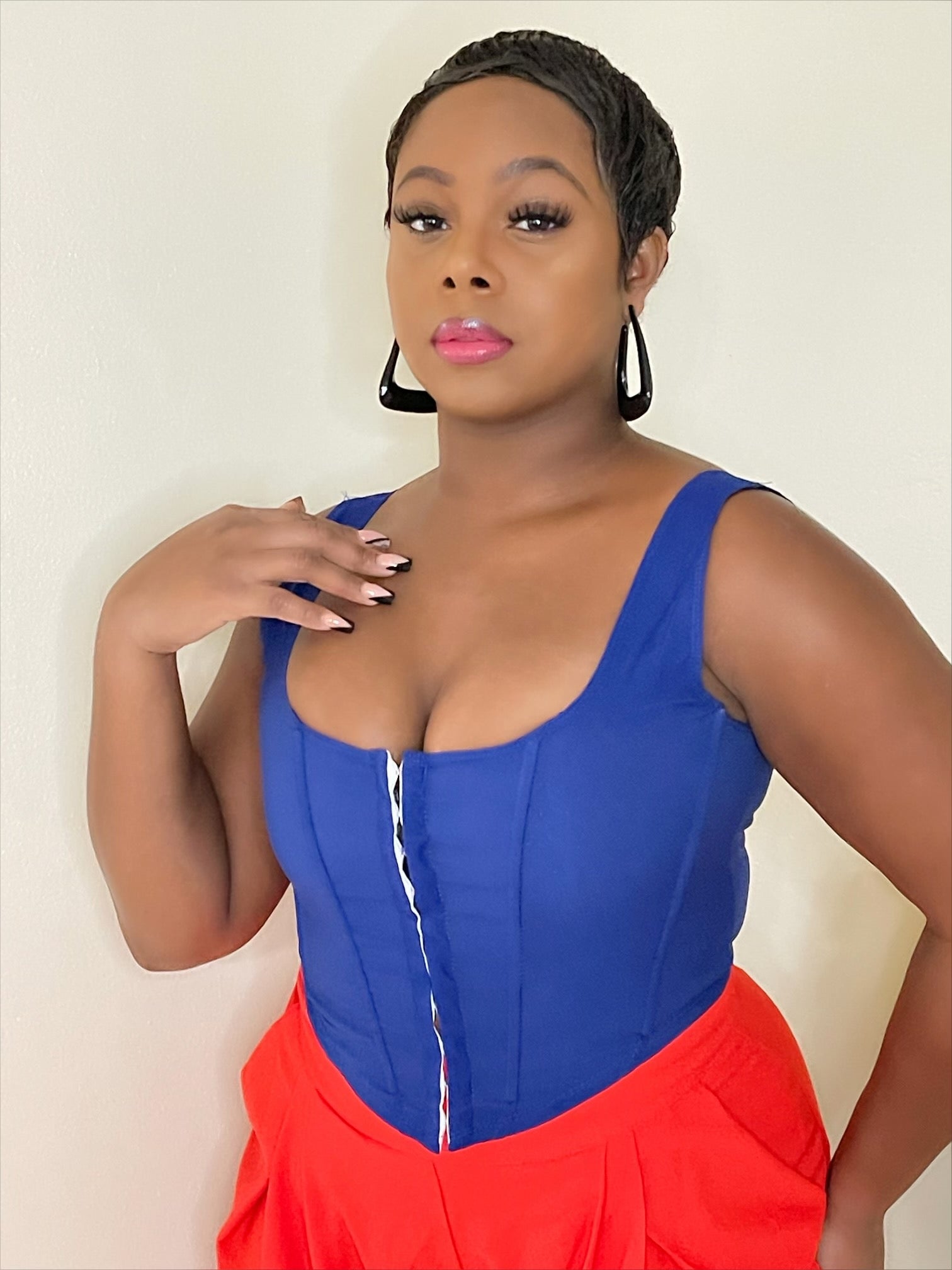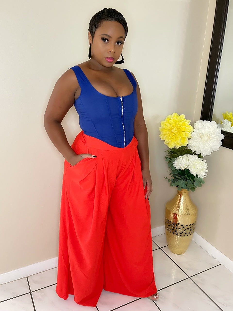Dress up any bottom in our Dior Top Blue. Featuring a stretch fabric, round neckline, bustier style, with bold coloring and hook closures