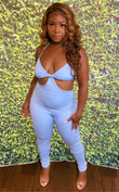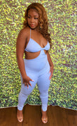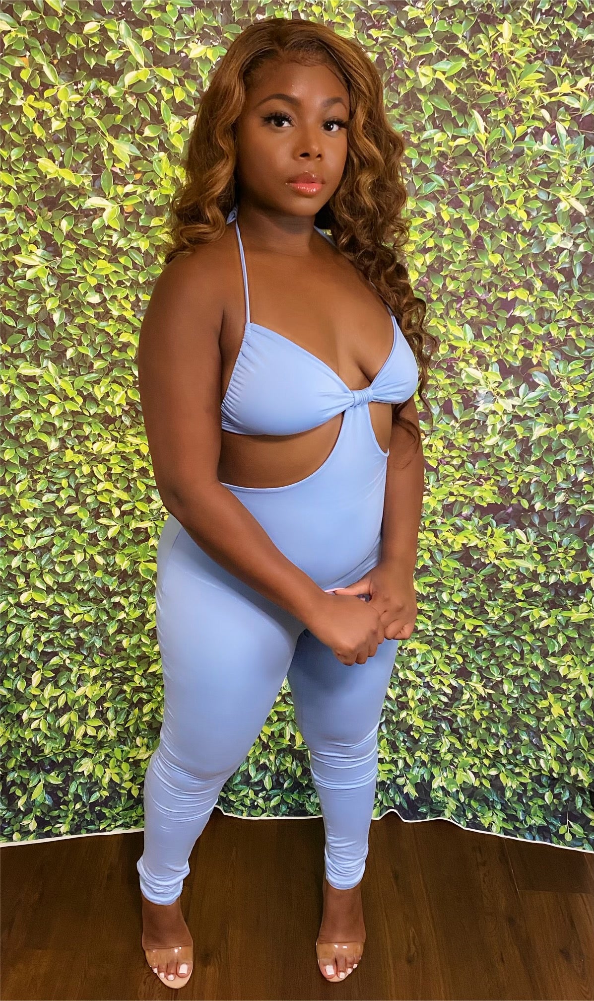 The sky’s the limit in our Bambi Jumpsuit. Featuring a stretch fabric, lace up neckline with cut outs, beautiful coloring and tie up closures.