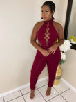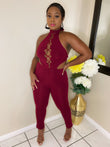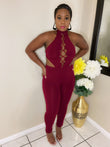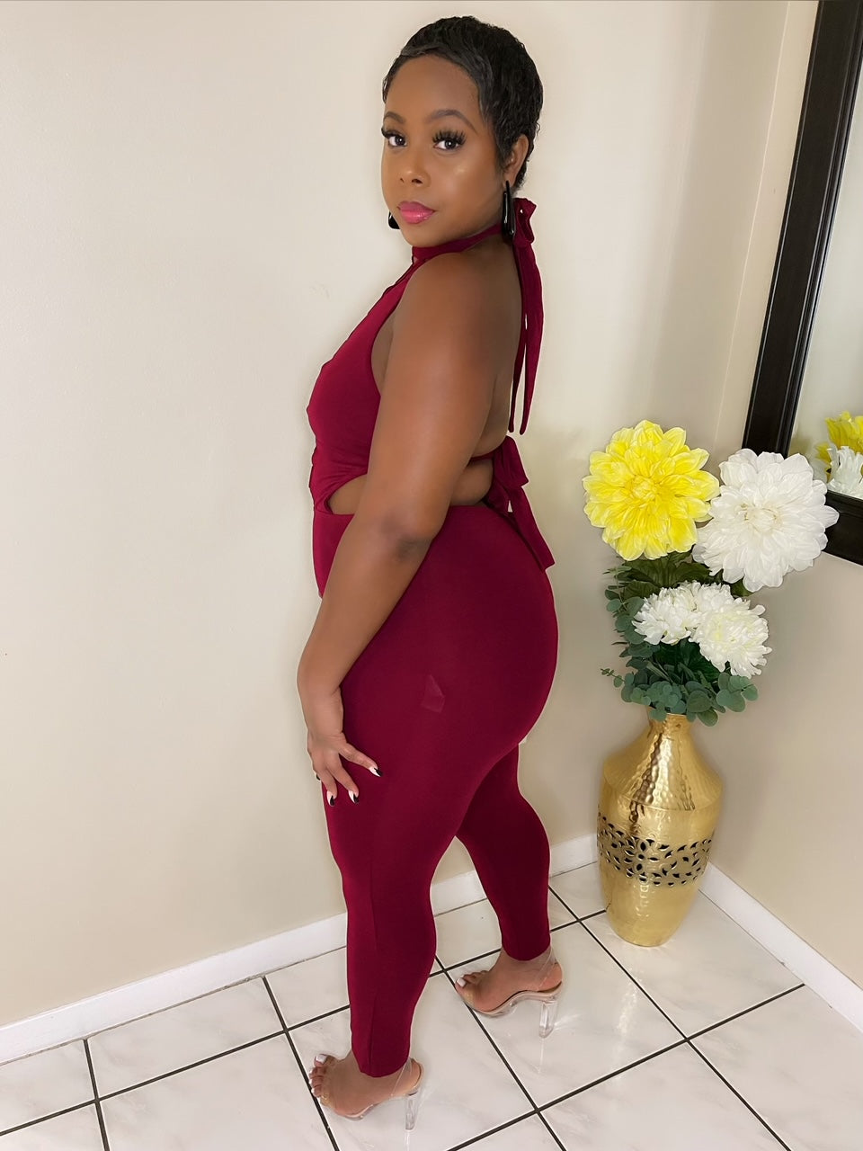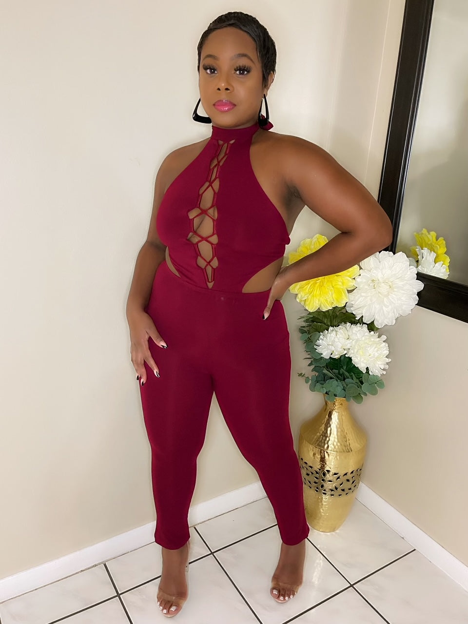 The sweeter the Berry the sweeter the juice in our BlackBerry Jumpsuit. Featuring a stretch fabric, open tie up neckline, bold coloring, open back with a tie back closure.