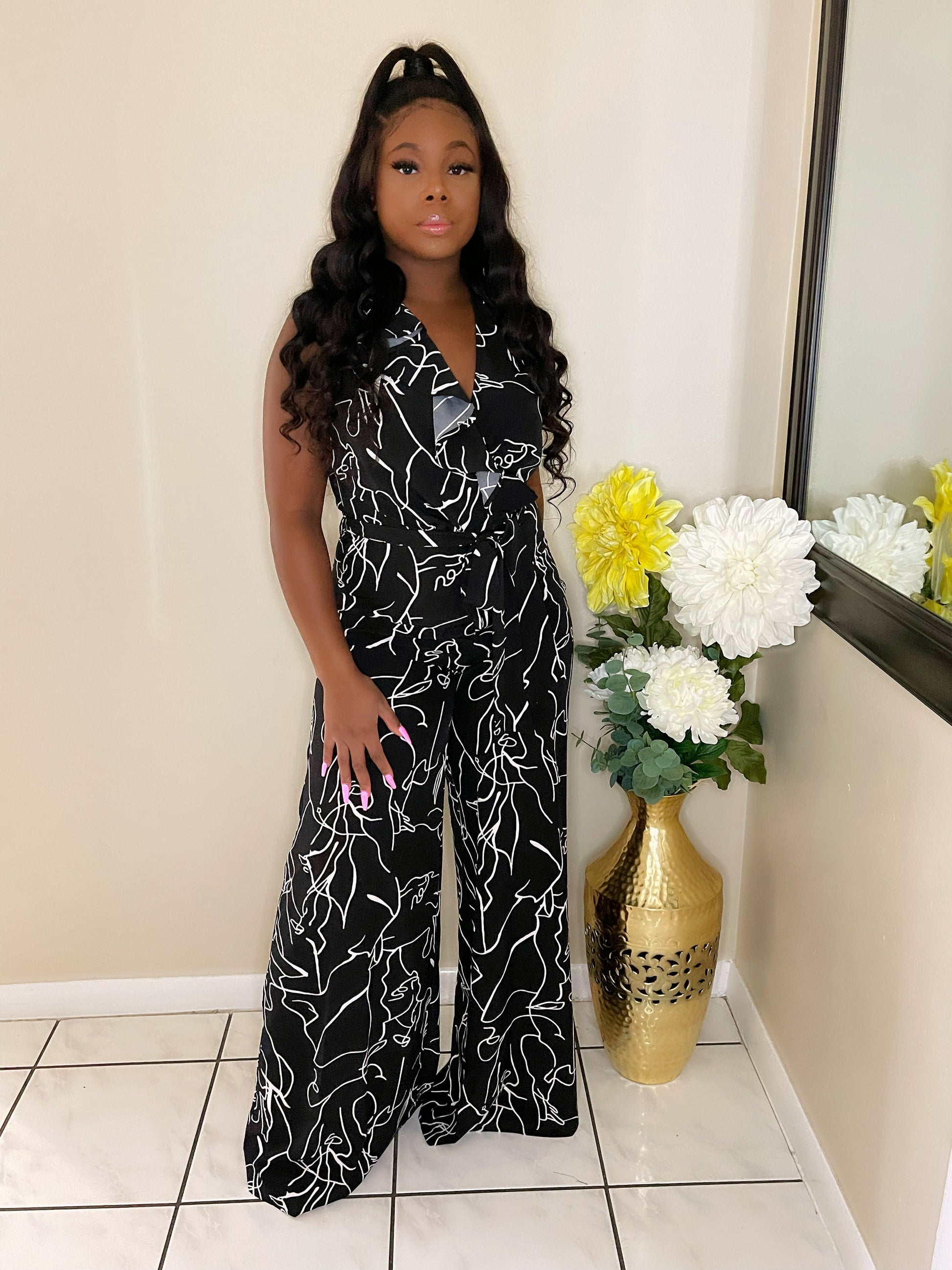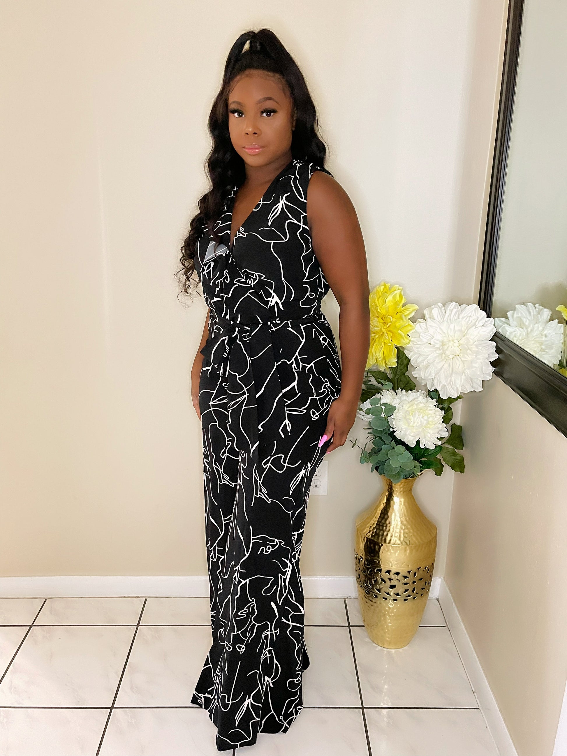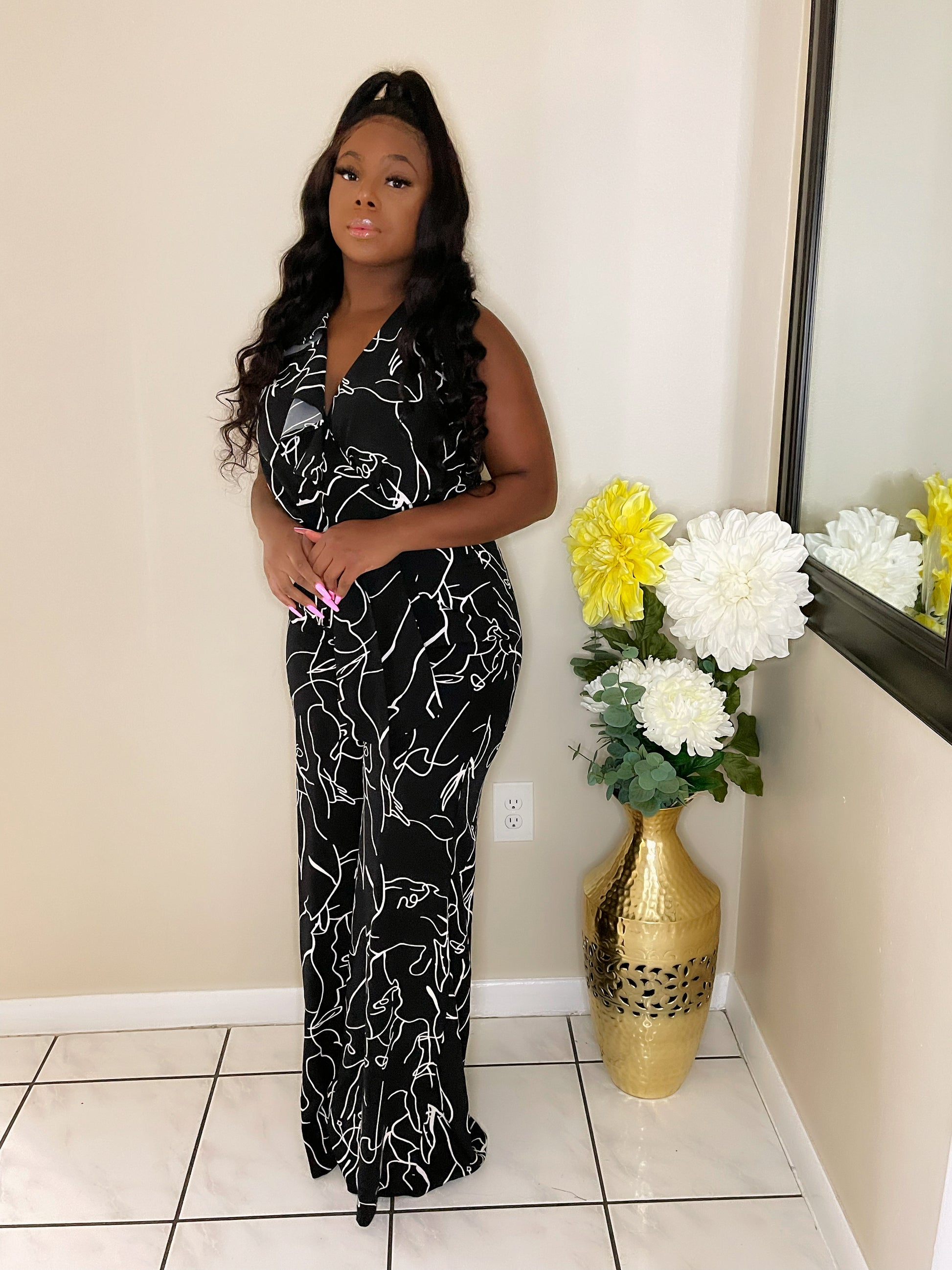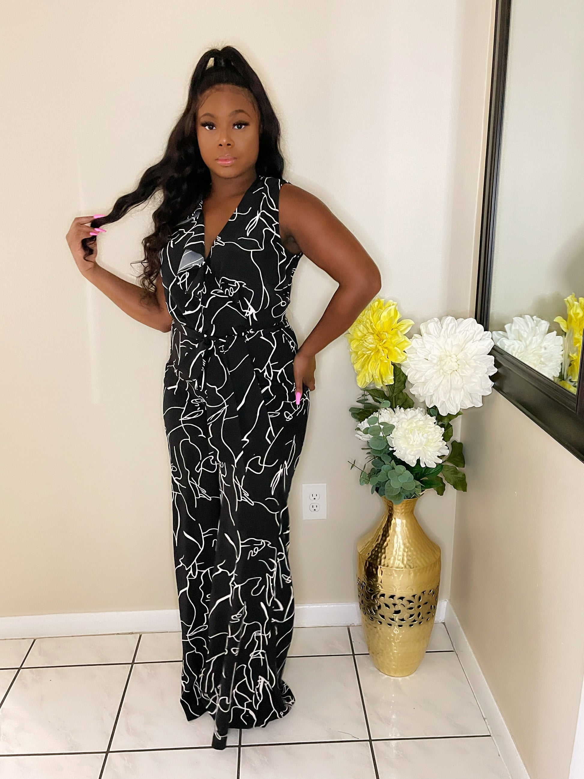 Taking it back in style in our Disco Jumpsuit! Featuring a semi stretch fabric, v neckline, ruffles, bold pattern, belted waistline, wide legs, and zipper closure.