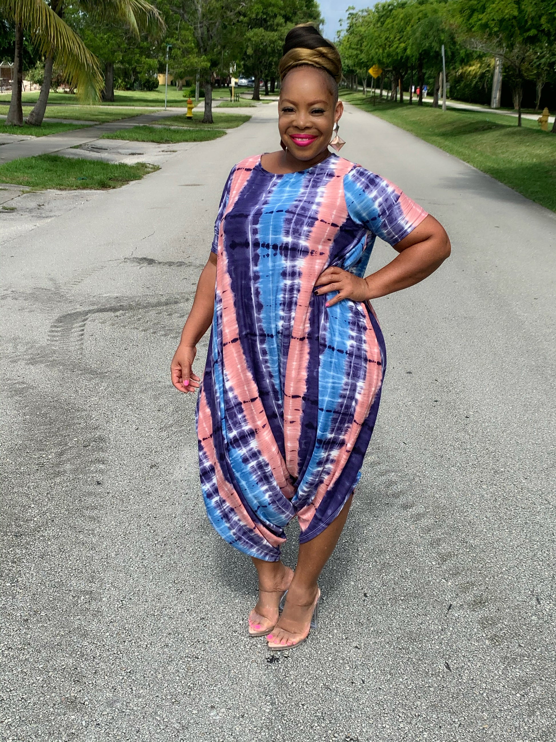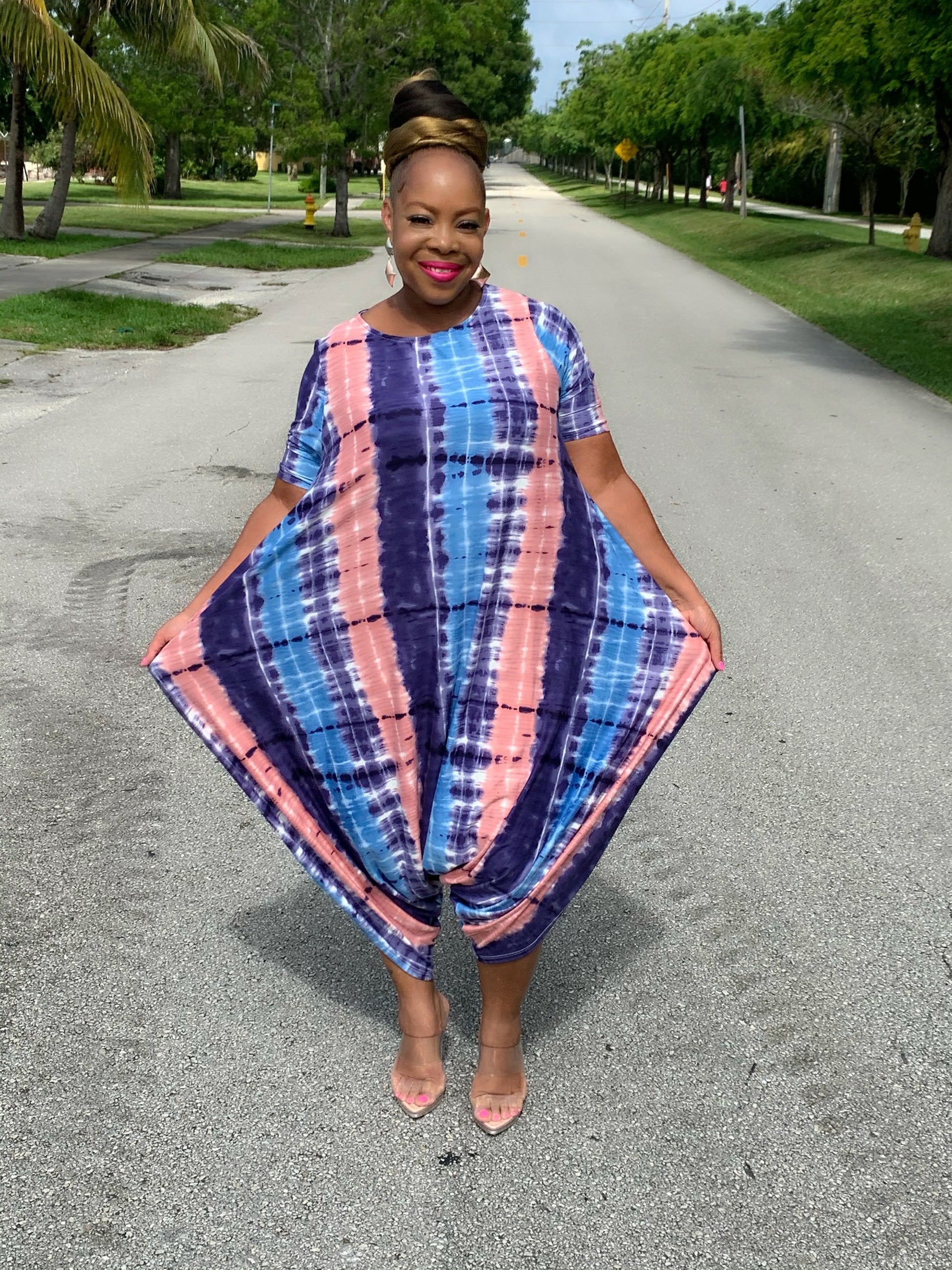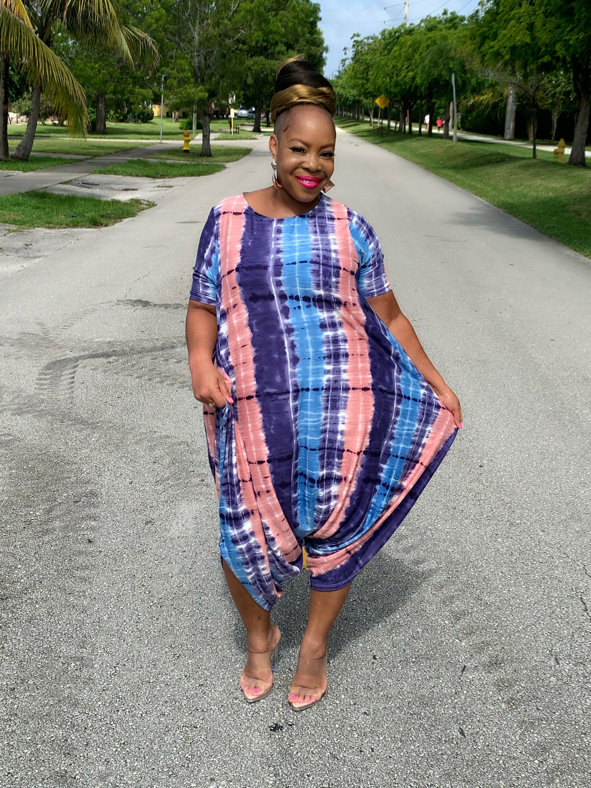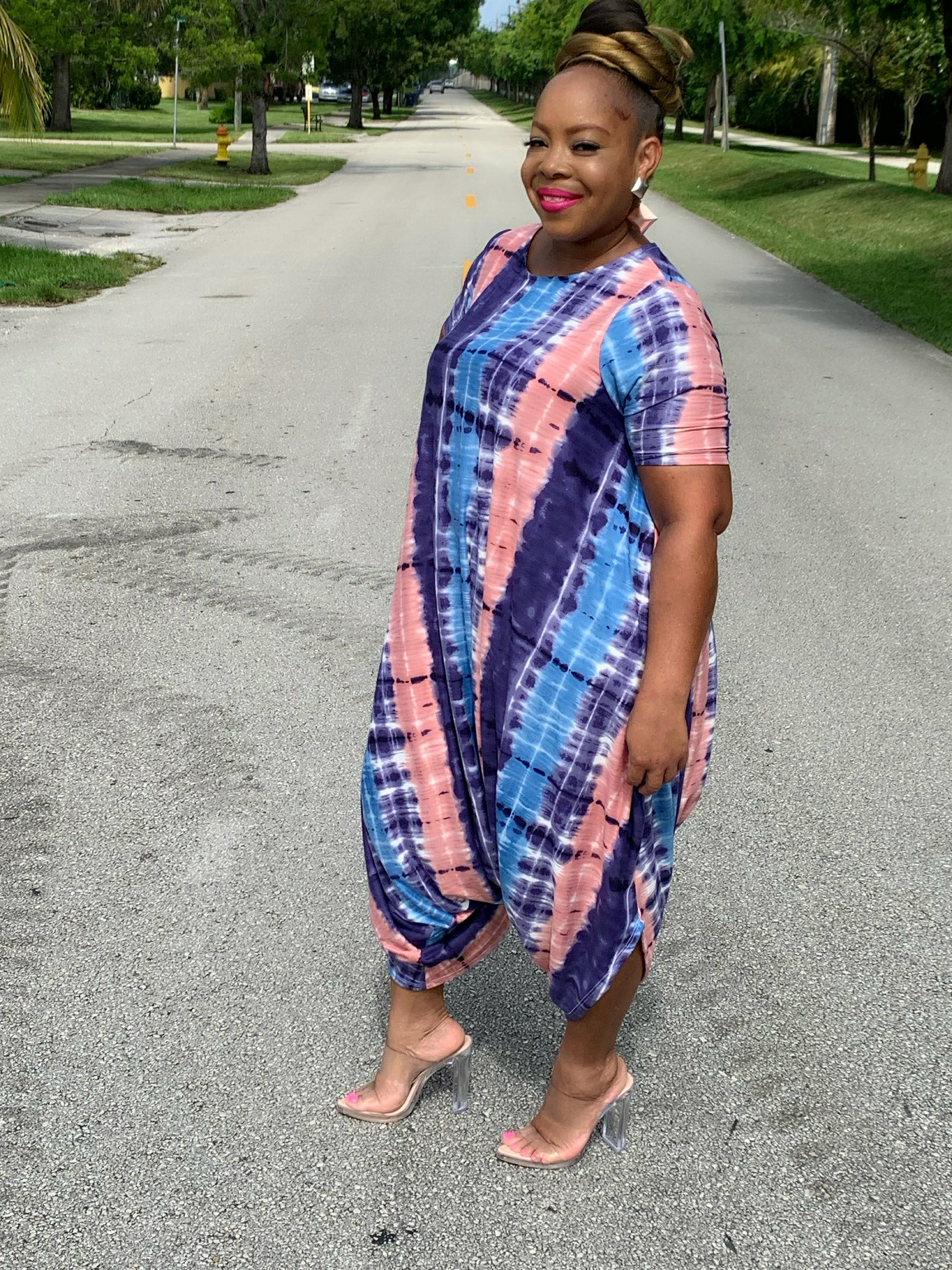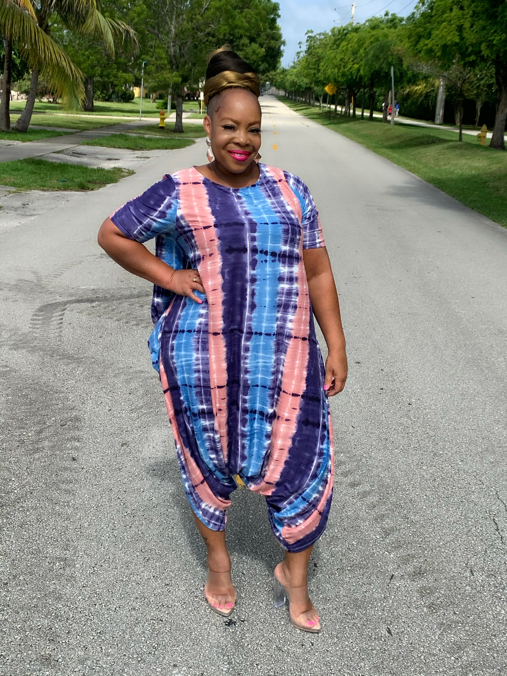 Looking for a little Quarantine Slay! The On Curve Jumpsuit is exactly what you’re looking for! Featuring a stretch fabric, round neckline, with vibrant tie dye pattern and button closure. Plus Size 1X, 2X 3X