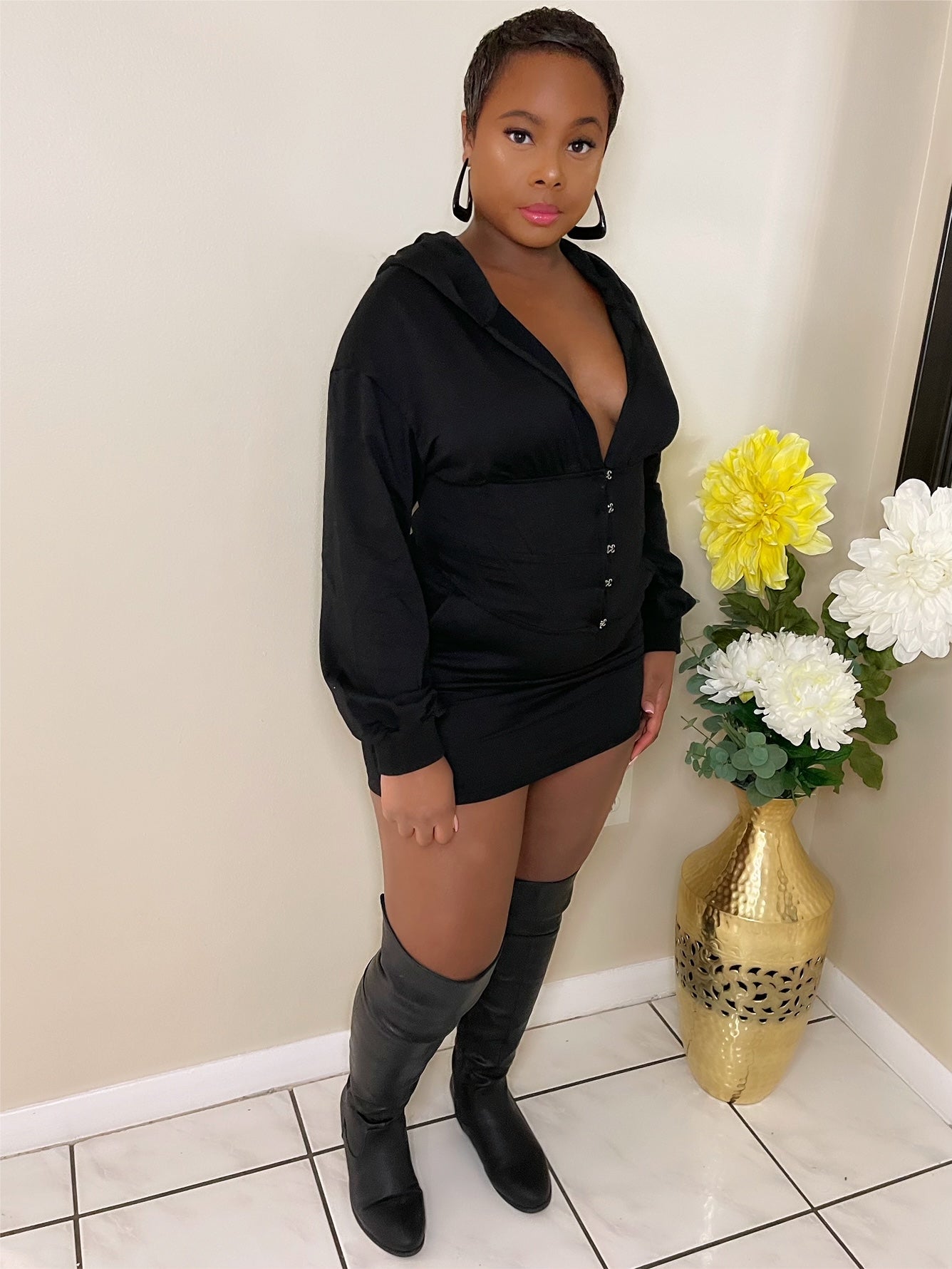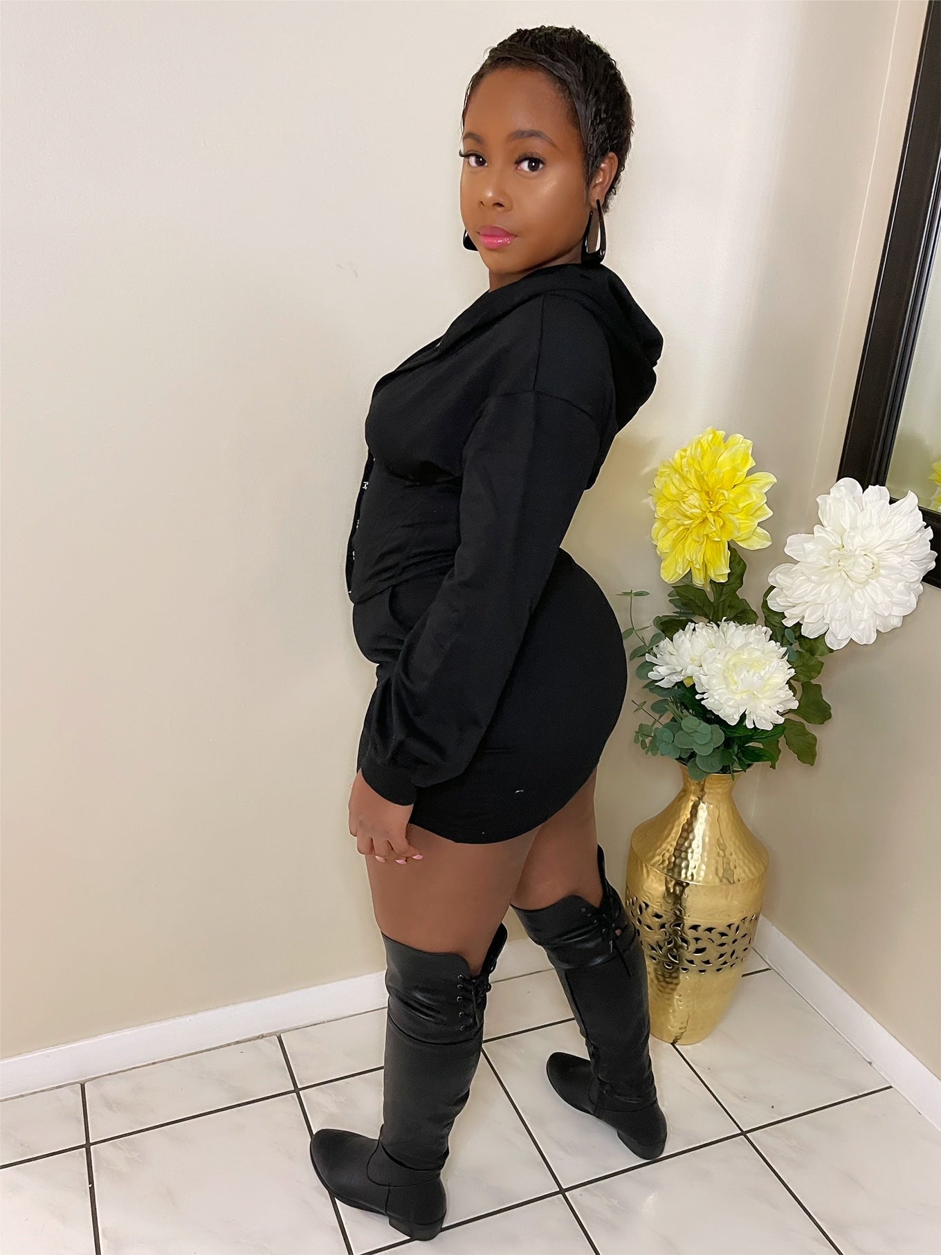 Black is the thing to be in our Boutique Skirt Set. Featuring a stretch fabric 2 piece set with round neckline, corset top with mini skirt with no closures. Super stylish and sexy
